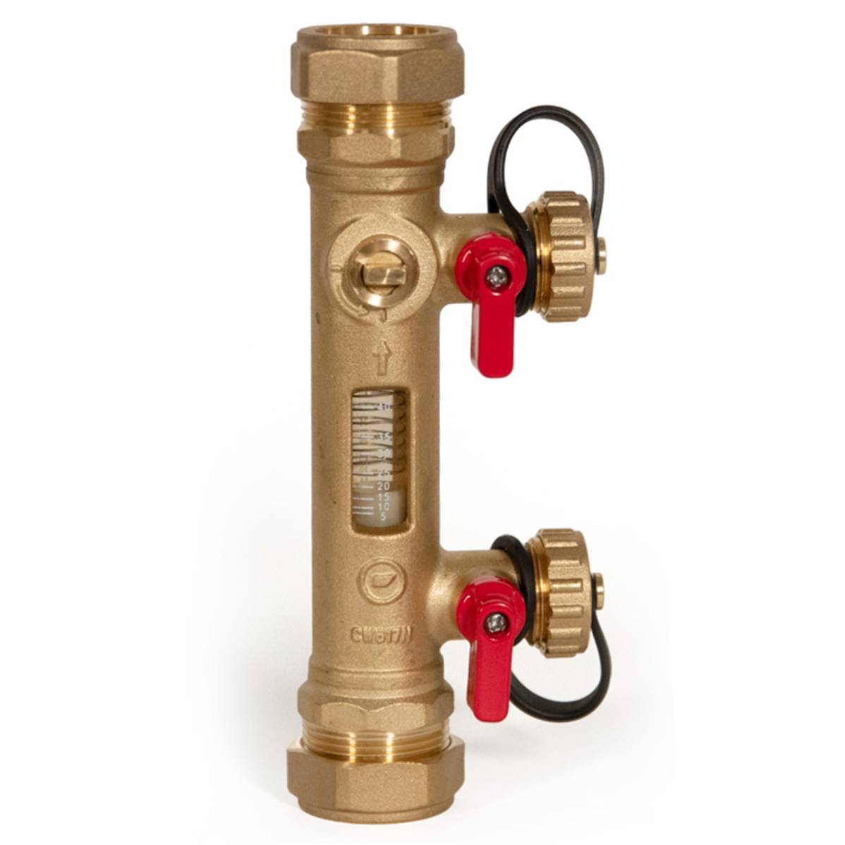 The Inta Fill and Flush Ball Valve regulates fluid flow, maximizes heat collection in cylinders, and features a bi-directional ball valve to stop water flow for easy servicing. It is designed with 28mm compression connections (EN1254-2) and G 3/4? fill & flush connections with sealing cover caps for secure installation. A clear window allows for precise flow rate adjustment, and the valve is suitable for use with water and up to 50% glycol solutions, ensuring efficiency and reliability in heating systems.