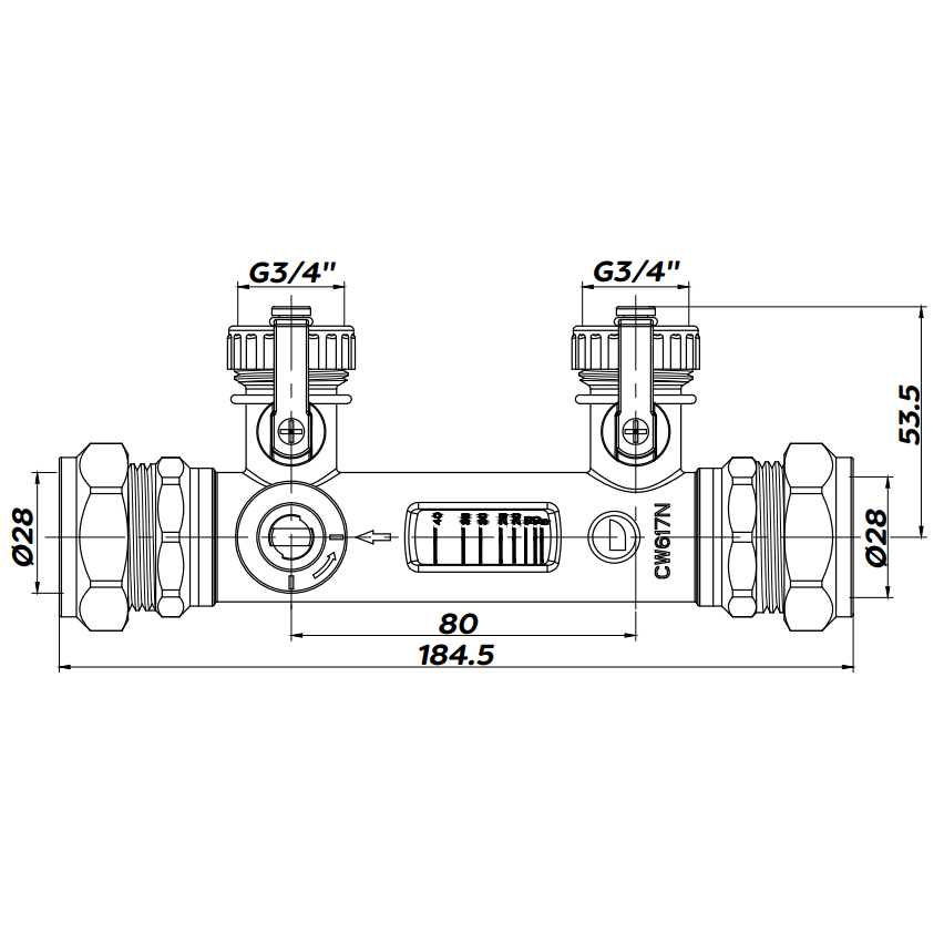 28mm Flow Balancing Valve 10 - 50 L/min with G3/4" Fill & Flush INFBV28