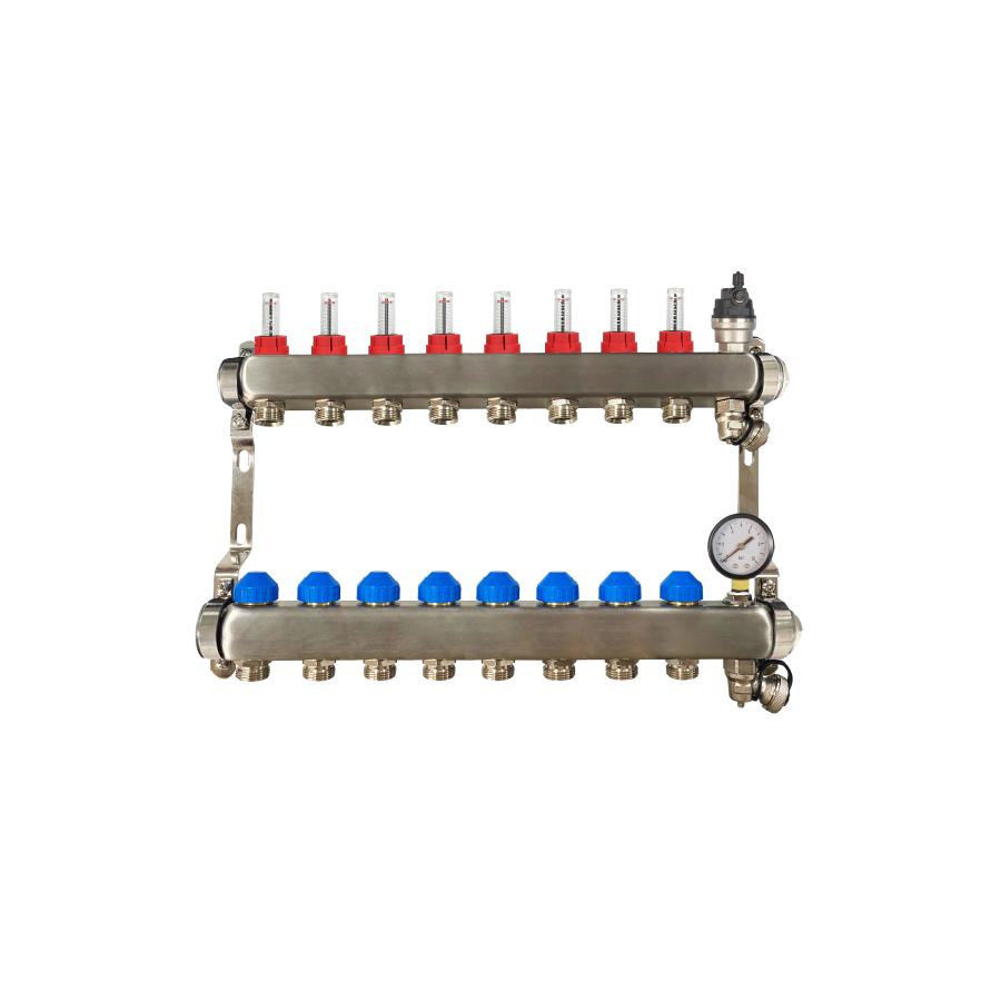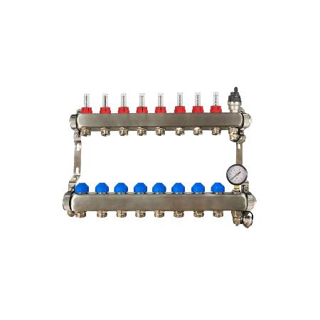 RadiantHeat PRO 8 Port Manifold with Pressure gauge and Auto Air Vent ZL-117508