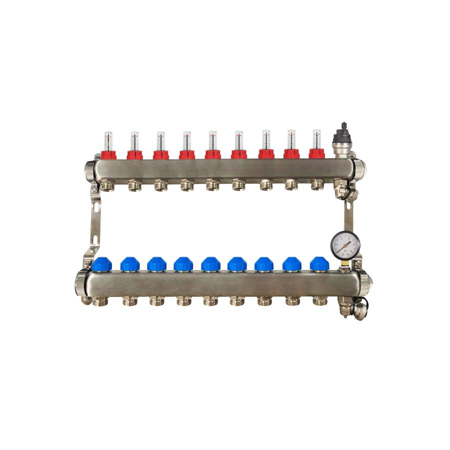 RadiantHeat PRO 9 Port Manifold With Pressure Gauge and Auto Air Vent ZL-117509