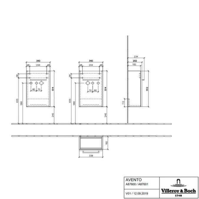 1. Description of Villeroy & Boch Avento 340 LH Door Cloakroom Vanity Unit With RH Basin Crystal White SAVE32B401:
