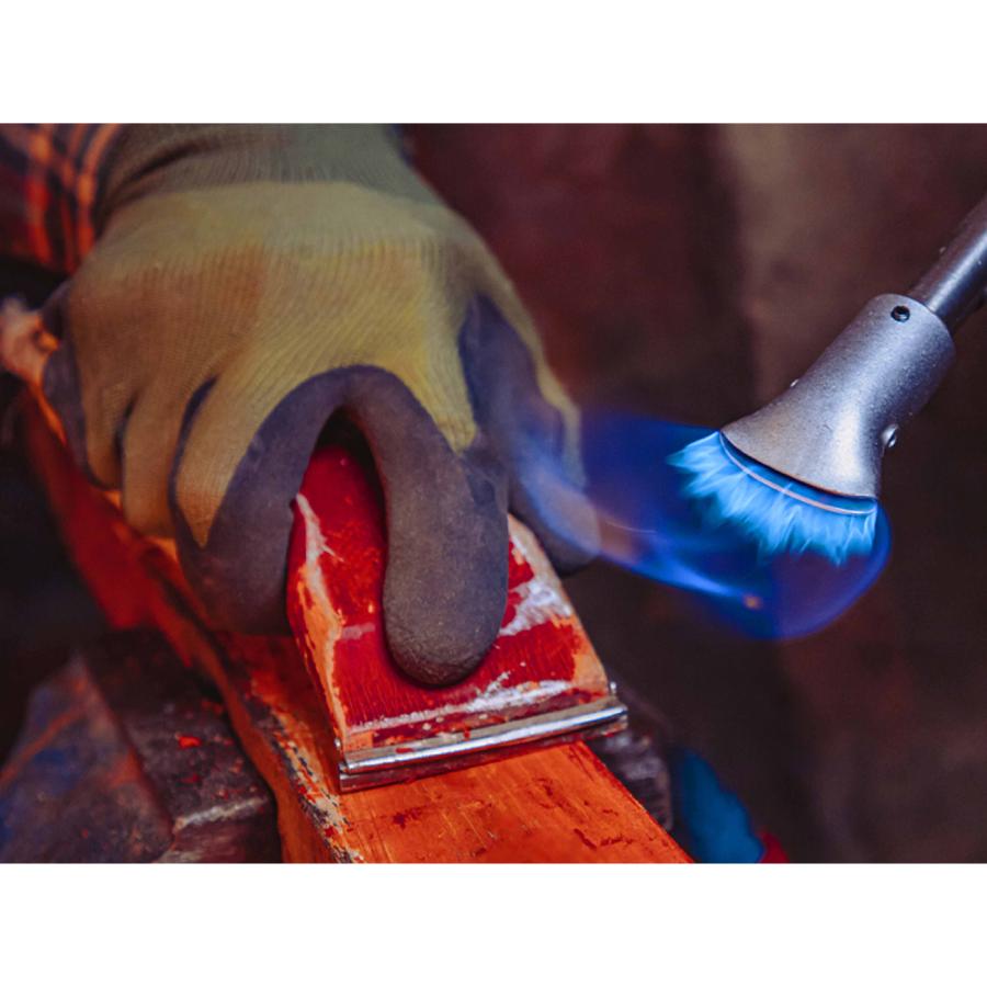 For use with the SUPERFIRE PRO™, the Flat Flame Burner delivers a broad, flat flame ideal for applications requiring uniform heating across wider surfaces. It is highly effective in painting and decorating projects, providing precise heat for tasks such as paint stripping and surface preparation.