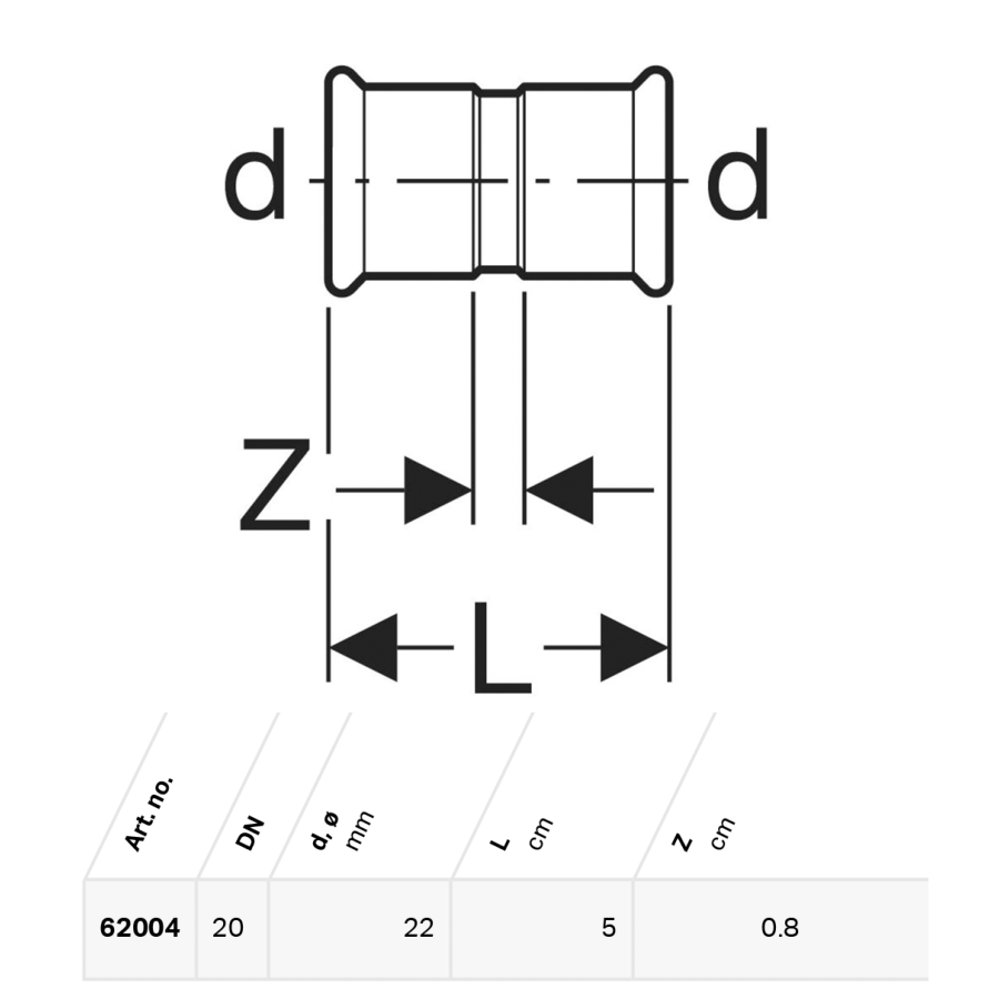 1. Description of Geberit Mapress Copper Coupling: d=22mm - 62004: