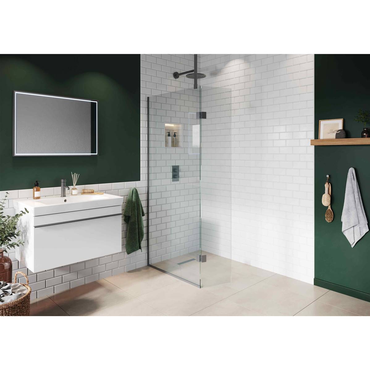 Elevate your bathroom with the Abacus Anthracite 900+350mm Fixed 8mm Wet Room Screen. Made from durable 8mm toughened glass, it features Easi-Clean technology to resist water spots, limescale, and bacteria, ensuring easy maintenance and long-lasting cleanliness.