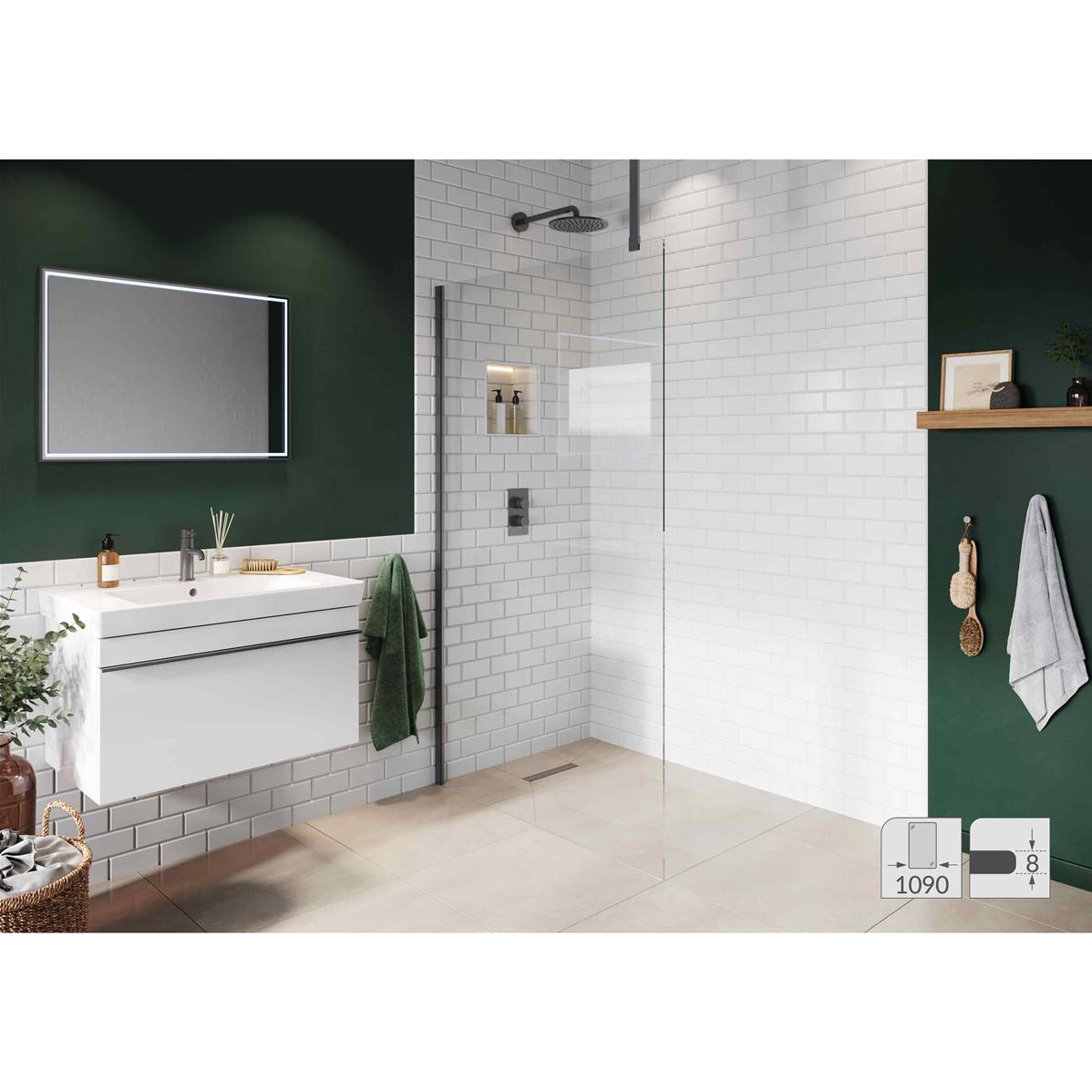 Abacus Elements 8mm Wetroom Screen 1090mm Matt Anthracite Minimal Channel Ceiling Support