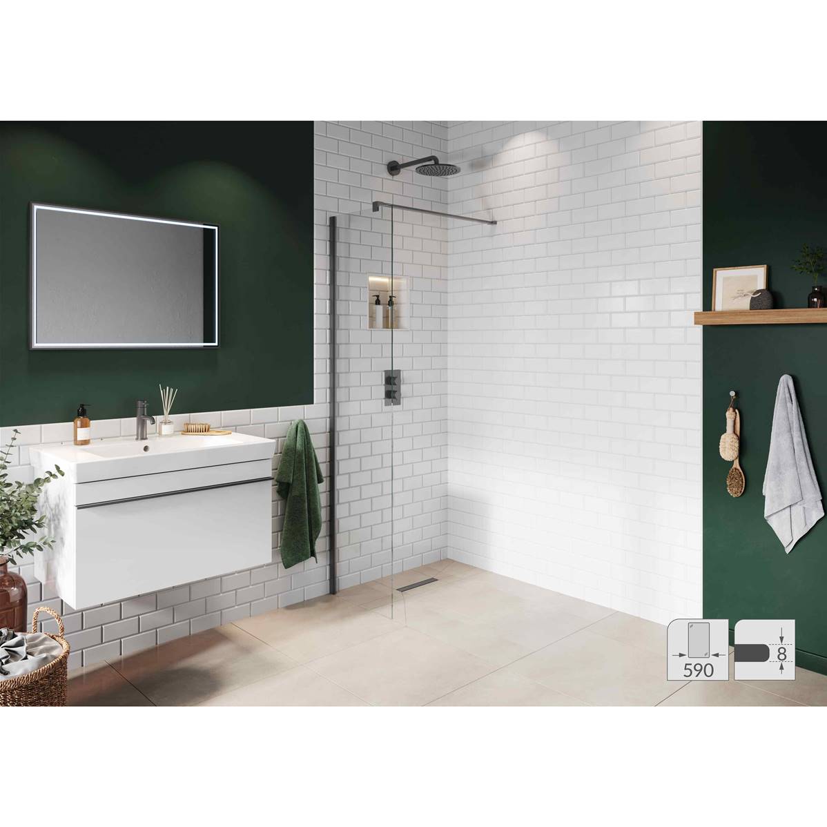 Abacus Elements 8mm Wetroom Screen 590mm Matt Anthracite Minimal Channel Wall Support