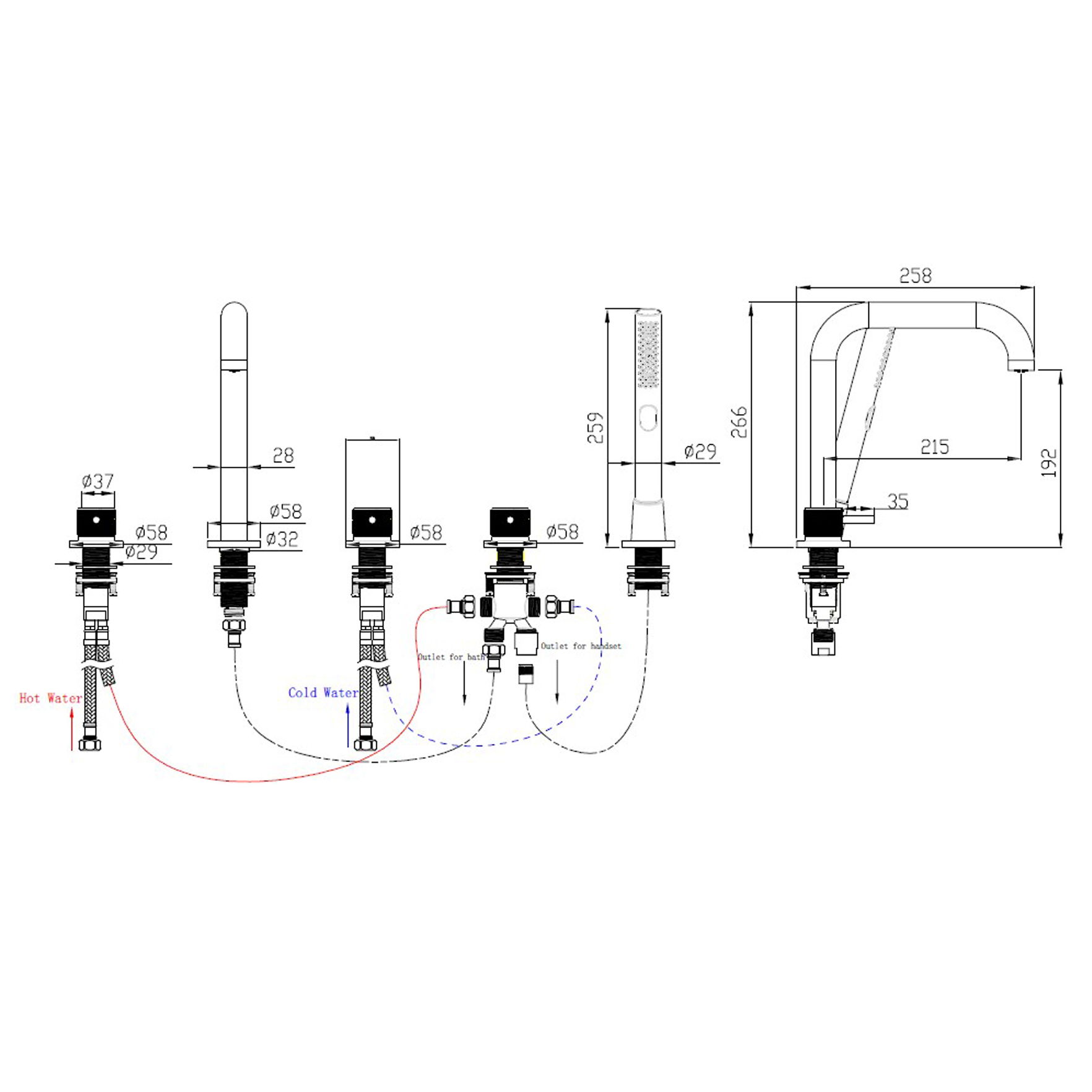 2. Features of Abacus ISO PRO Deck Mounted 5TH Bath Shower Mixer Matt Anthracite TBTS-446-3222:
