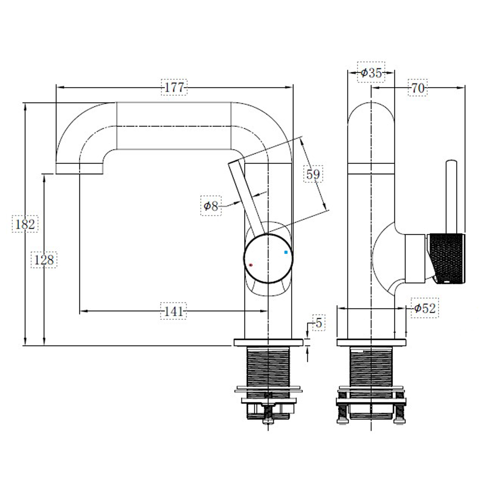 2. Features of Abacus ISO PRO Mono Basin Mixer Side Handle Matt Anthracite TBTS-446-1404:
