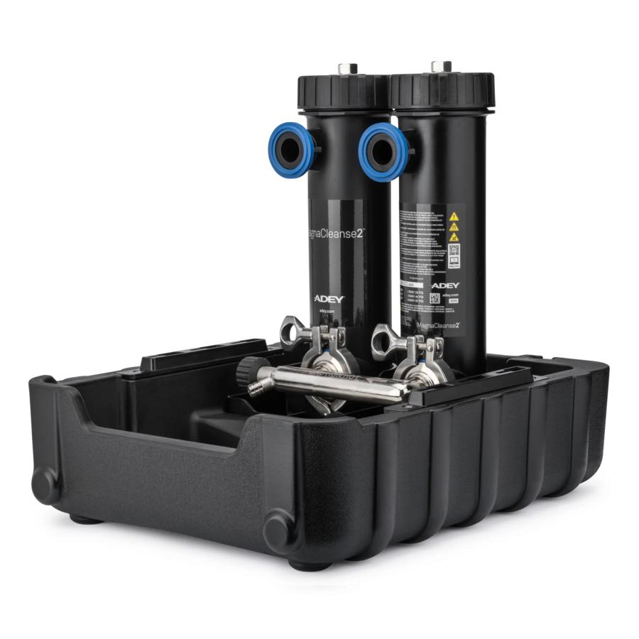 An evolution of the original ADEY MagnaCleanse® this updated model delivers the same powerful magnetic cleaning power, with enhanced ease of use delivered through both ergonomic and functional improvements.ADEY MagnaCleanse 2® remains the original solution for deep cleaning heating systems and removing stubborn magnetic debris.Designed for use on ageing or problematic systems, ADEY MagnaCleanse® systems are also designed for retro-fit system preparation, protecting the installation of replacement boilers and heat pumps installed onto existing systems. Used in conjunction with ADEY’s powerful MC5® Rapid Flush Cleaner and VibraClean® agitator, MagnaCleanse® systems can be used independently or in combination with a power flushing machine, to deliver a fast deep cleaning solution for the improved performance and efficiency of most types of wet central heating systems.Installer benefits:• Powerful dual magnetic core - Removes sludge and debris more efficiently that a single core equivalent • Flexible application - Can be used alongside a functional heating appliance or system. Or in combination with a power flushing machine• Compact, portable solution- easy to use and transport to site​ • For use on most wet central heating systems - including UFH, conventional heating and low temperature renewable heating systems​ • Use in combination with ADEY MC5® Rapid Flush Cleaner- for fast, effective results ​ • Includes hose pack, hose to valve filter adapter pack, ADEY VibraClean® agitator, hose adapters and in-line drain off valve​ • Two-year manufacturer warranty​Kit contents:1 x MagnaCleanse® RapidFlush filter1 x VibraClean1 x MagnaCleanse® hose-to-valve connector2 x Hose length6 x Hose clamps4 x Female cam locks 1 x Drain valve