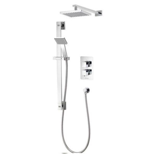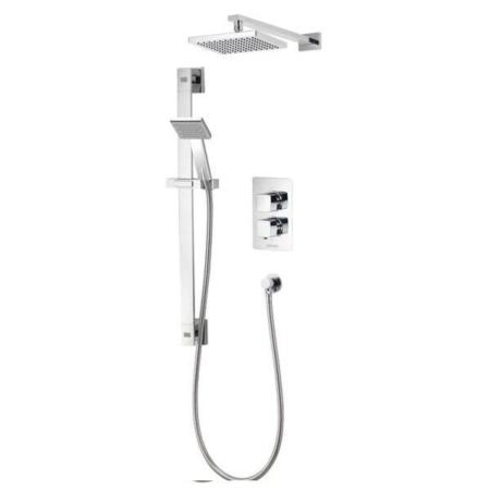 Introducing the Aqualisa AQ Concealed Thermostatic Valve with Adjustable Kit & Fixed Wall Head. This sleek and contemporary shower kit is the perfect addition to any bathroom suite. The kit includes a dual outlet thermostatic valve, slimline wall-plate, adjustable rail, square 3-mode shower handset, 1.5meter hose, and square fixed drencher head, all in a gloss chrome finish. The thermostatic valve ensures a consistent water temperature, while the adjustable rail allows you to customize your showering experience. The 3-mode shower handset provides a choice of different spray patterns, while the fixed drencher head offers a wide coverage area for an enjoyable showering experience. With its high quality construction and stylish design, the Aqualisa AQ Concealed Thermostatic Valve with Adjustable Kit & Fixed Wall Head is the perfect choice for any home. Order yours today and enjoy a lifetime of uninterrupted showers.