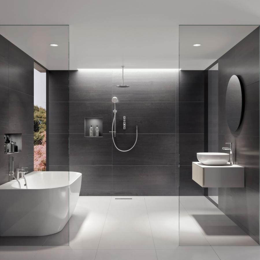 Digital diverter technology allows switching between adjustable and drencher shower heads