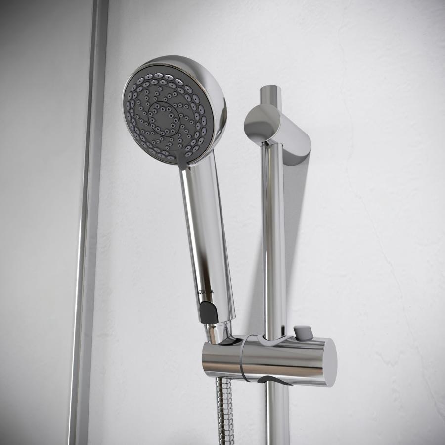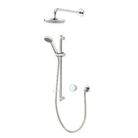 Quartz Blue Smart is now fitted with the new and improved SmartValve™ with an integrated diverter that delivers the most advanced showering systems available in terms of safe, regulated temperature control and eco-friendly water usage. This is a flexible dual outlet system combining a large, wall-fixed overhead shower with an adjustable height handset and rail, ideal for different types of showering. Behind the simple, circular control, a single cable easily connects to the intelligent SmartValve™, which can be placed in the most accessible location 7.5 metres away from the shower area. With Wifi connection, showering choices can be managed from a smart phone using the Aqualisa app or voice control with an online dashboard available showing water usage and indicative costs. Suitable for approved high pressure water systems only.