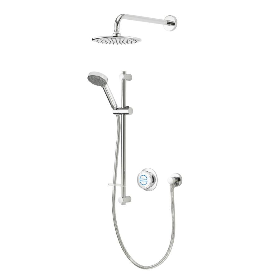 Quartz Classic Smart is now fitted with the new and improved SmartValve™ with an integrated diverter that delivers the most advanced showering systems available in terms of safe, regulated temperature control and eco-friendly water usage. This is a flexible dual outlet system combining a wall-fixed overhead shower with an adjustable height handset and rail, ideal for different types of showering. Behind the familiar push button Quartz control disk, a single cable easily connects to the intelligent SmartValve™, which can be placed in the most accessible location 7.5 metres away from the shower area. With Wifi connection, showering can be managed on a smart phone using the Aqualisa app or voice control with an online dashboard available showing water usage and indicative costs. Suitable for approved high pressure water systems only.