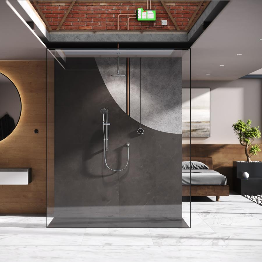 Quartz Touch Smart is now fitted with the new and improved SmartValve™ with an integrated diverter that delivers the most personalised showering systems available in terms of performance selection, safe, regulated temperature control and eco-friendly water usage. This is a flexible dual outlet system combining a ceiling-fixed overhead shower with an adjustable height handset and rail, ideal for different types of showering. Behind the distinctive, monochrome control, a single cable easily connects to the intelligent SmartValve™, which can be placed in the most accessible location 7.5 metres away from the shower area. With Wifi connection, the selected showering profile (pre-set or individually created) can be managed on a smart phone using the Aqualisa app or voice control with an online dashboard available showing water usage and indicative costs. Suitable for approved low pressure water systems only..