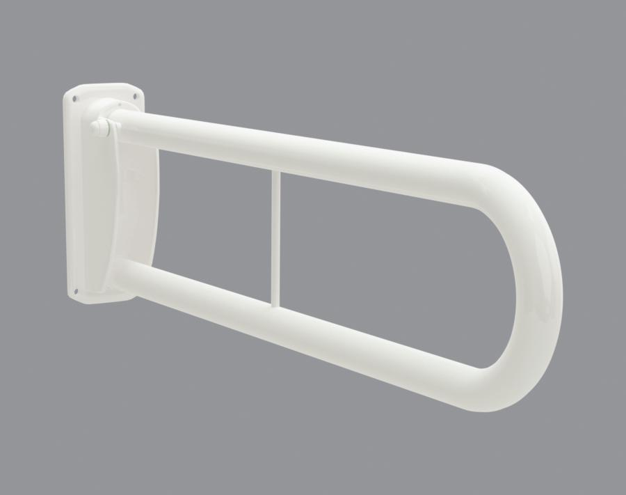 Bathex double arm hinged support rail made from mild steel, best for use in dry areas. 35mm tubular construction for superior strength and confidence, finished in white.