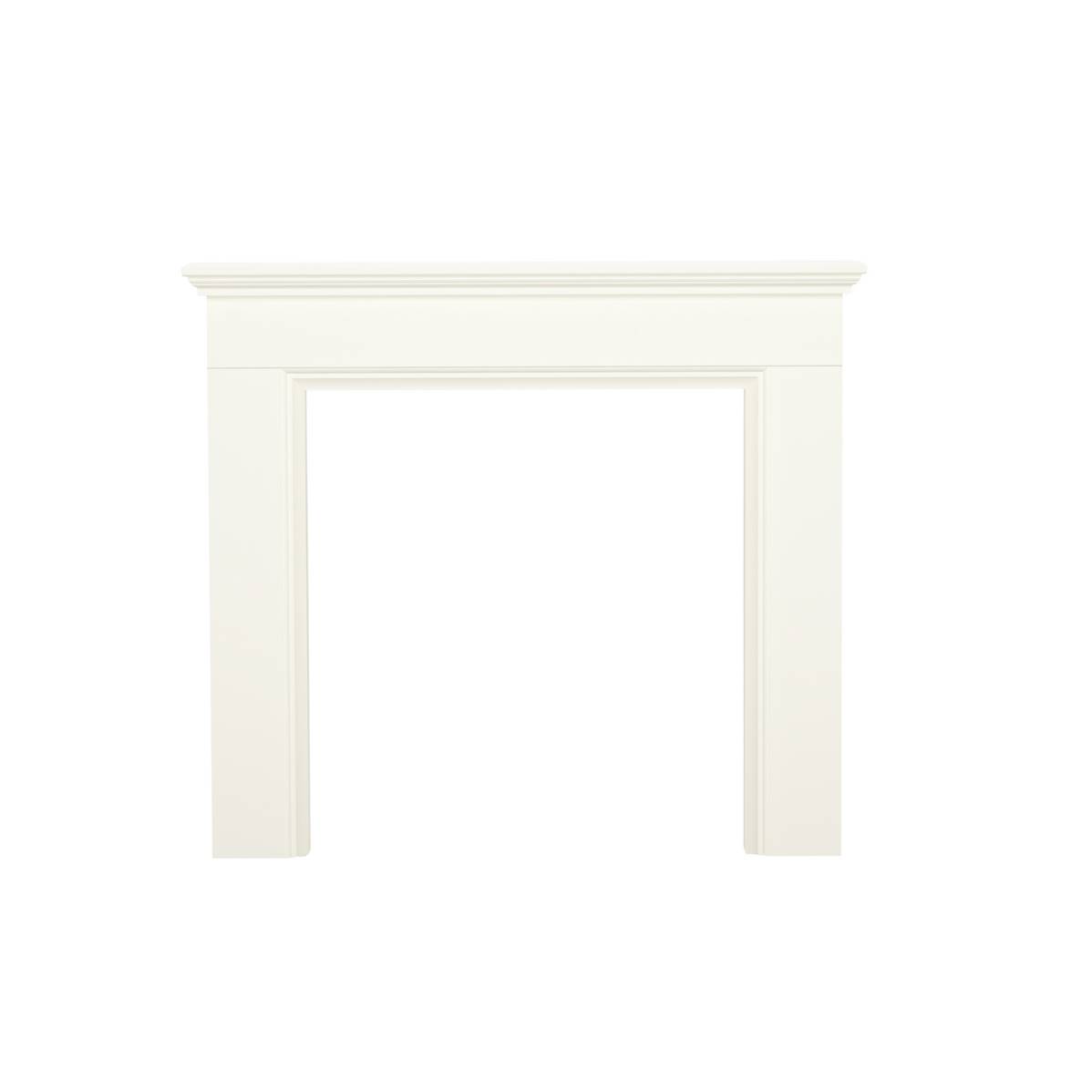 48" Timber Surround in Soft White painted finish with Black Granite back panel and hearth. Make a sensationally different impact by choosing this 1220mm (48”) timber surround with sumptuous Soft White finish and intricately bevelled mantel and inner edge - a high contrast framework to the highly reflective Black back panel and hearth.