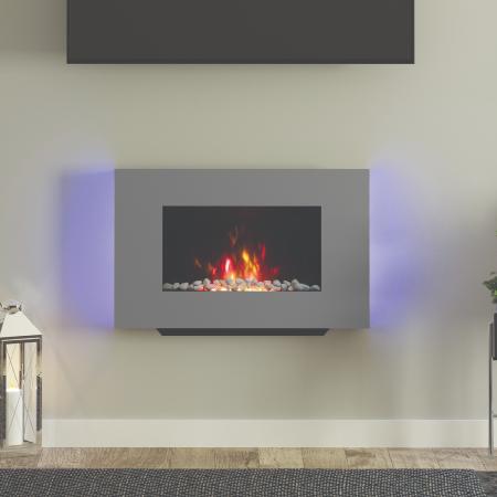 The Azonto is a modern and minimalistic design electric fire, with 7 mesmerizing and colourful flame effects and a bespoke fuel bed. Featuring a changeable fuel bed and a choice of loose pebbles, logs, and crystals, this fire can be customised to suit personal style. Finished in grey glass, with a simplistic flat wall fix installation, the Azonto boasts captivating colours for a sleek and contemporary look.