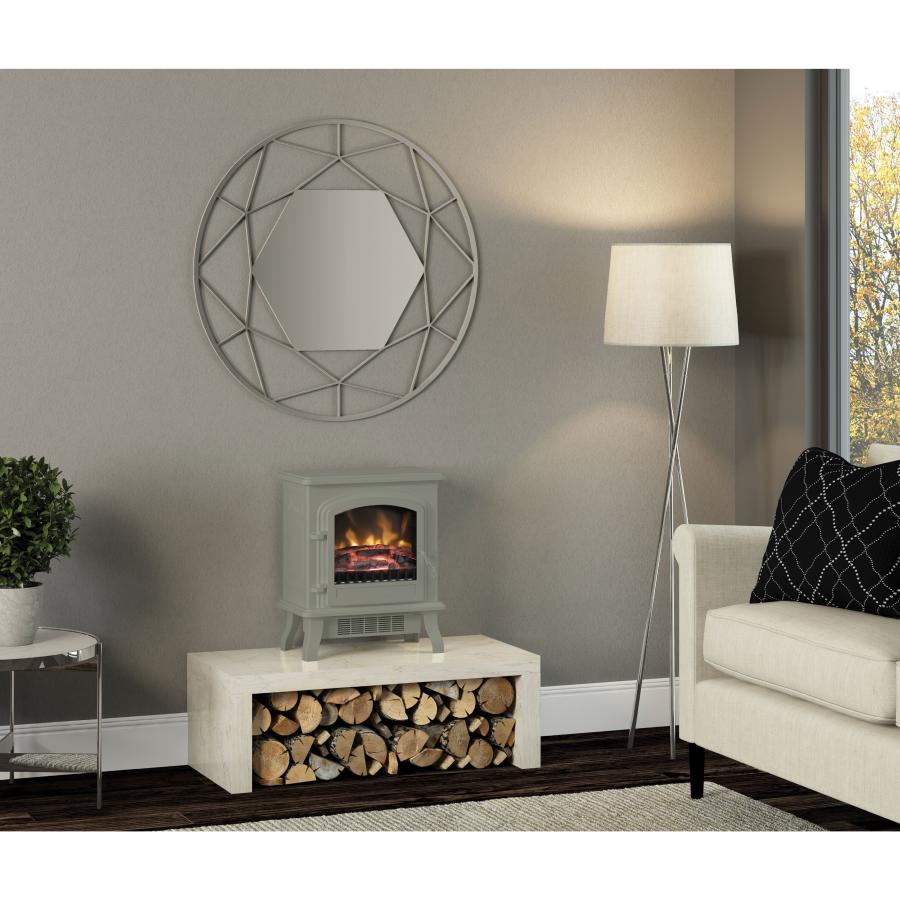 Be Modern Colman Electric Stove in French Grey with Log Bed 27502