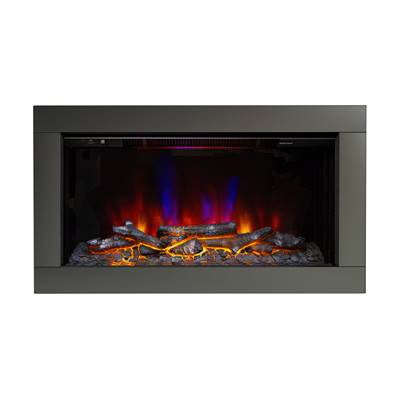 The Avella 34" Wall mounted inset electric fire is complete with a four sided trim in Black Nickel finish.