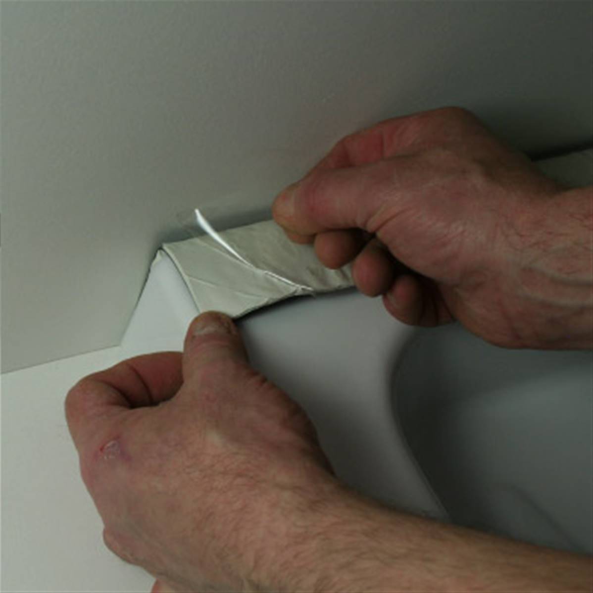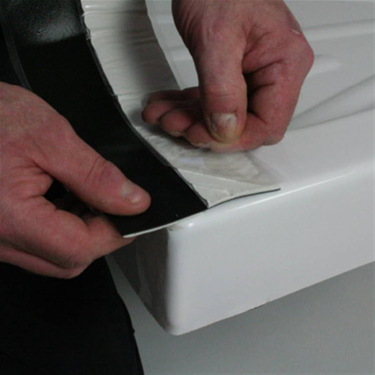 The two-part system consists of a black thermoplastic DPC membrane (the same material which is used when damp-proofing houses), and a white heavy-duty butyl membrane. It sticks firmly to virtually any surface, with no need for primers, screws, brackets or additional products. It even provides instant grip to newly dried plaster.
