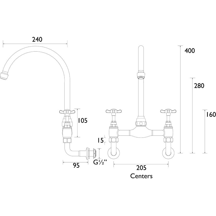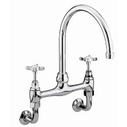Efficient wall mounted bridge sink mixer tap from Bristan's 1901 collection is one of the essentials for an elegant kitchen scheme. The kitchen tap model N WMDSM C is made from brass with gold finish. It is suitable for all plumbing systems. Designed to conform to BS EN 200 sanitary tapware. Quick and easy to install.