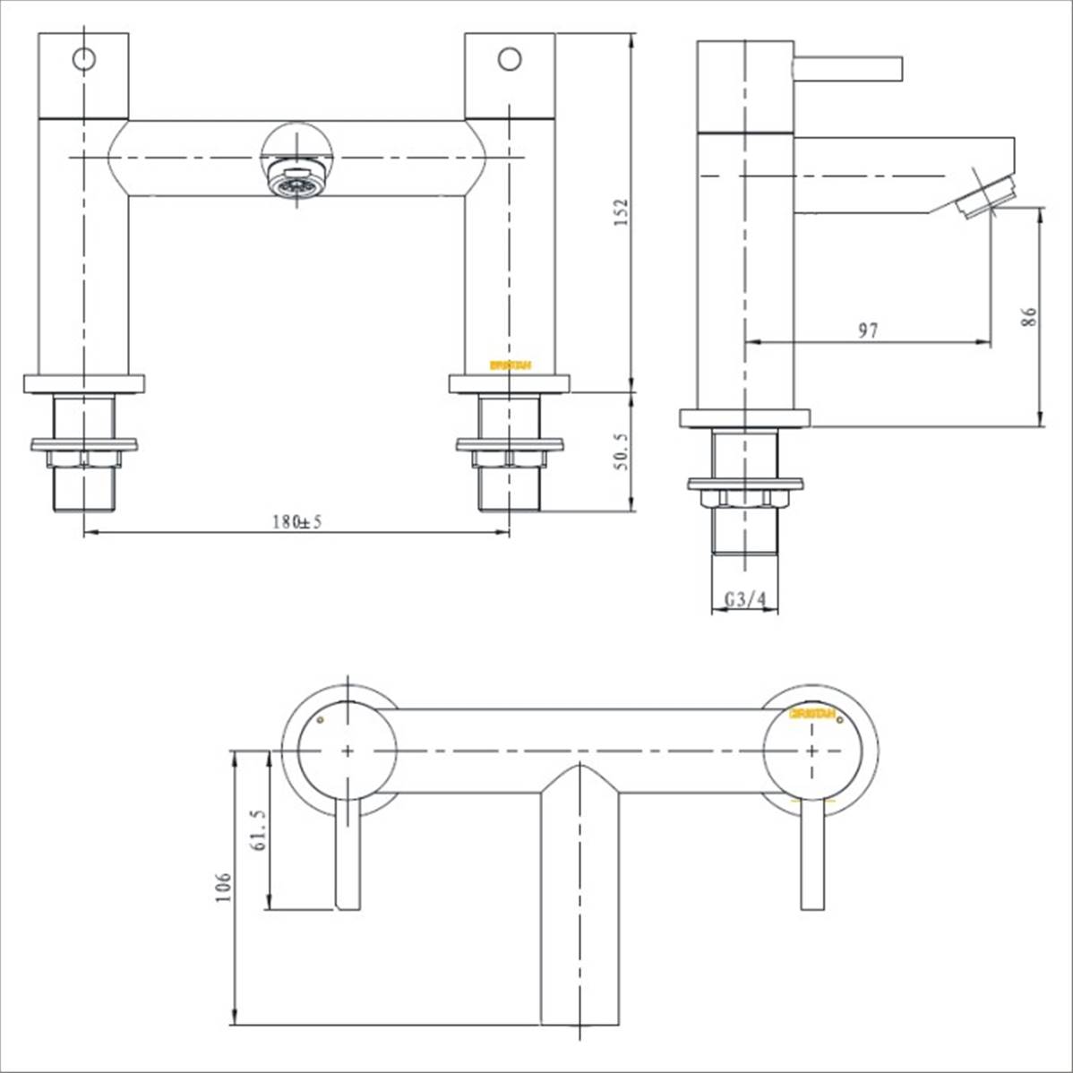 The tap body is constructed from high-quality brass and supplied with metal handles. Its universally popular chrome finish in conjunction with a classic, yet trendy pattern makes it an ideal choice for a range of bath varieties in terms of design, style and colour. Easy to install and maintain, this offering is suitable for all plumbing systems.