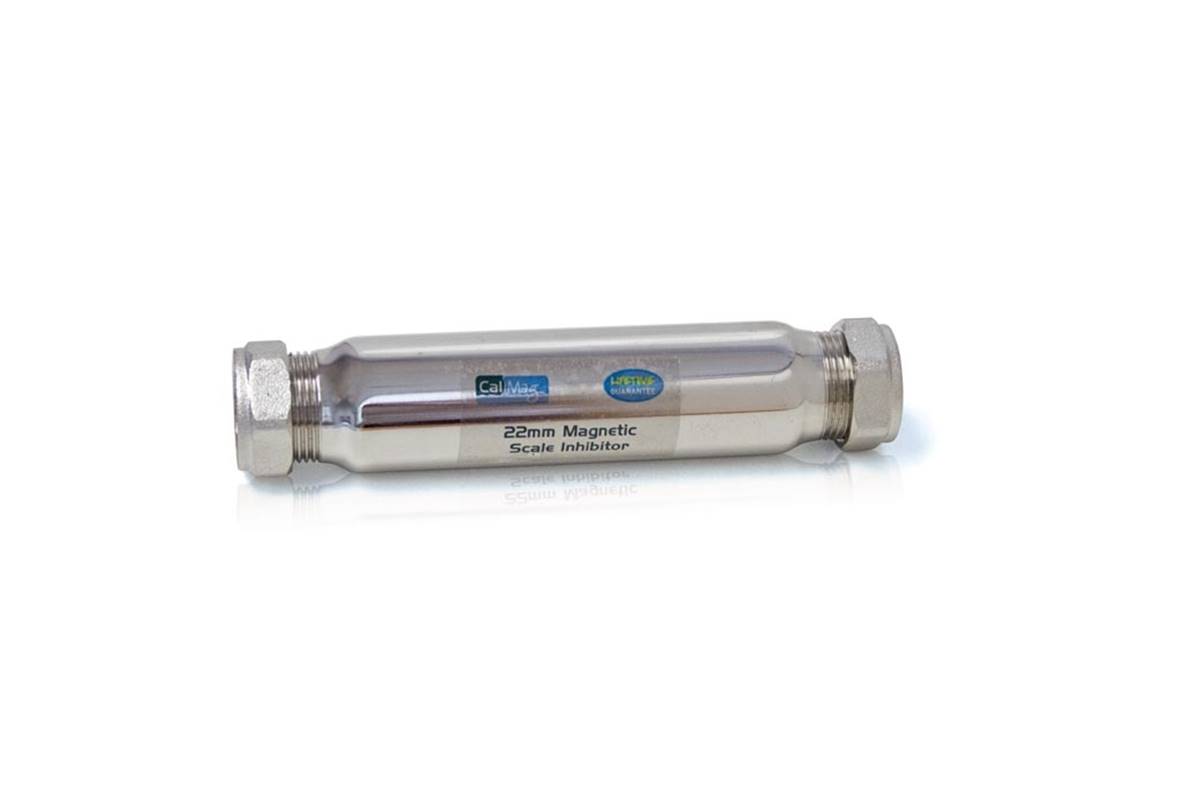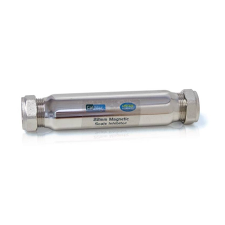 The CalMag magnetic scale inhibitor is suitable for installation on cold water lines for the prevention of limescale formation. The unit is supplied with 22mm compression fittings. The CalMag unit can also be adapted for use with push fit fittings. No earth bonding is required.
