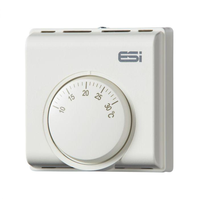 The ESI Mechanical Room Thermostat ESRTM is the perfect solution for simple and non-technical people looking for an economical method to control their room temperature. Constructed of durable components to ensure long lasting performance, this mains voltage mechanical room thermostat features a straightforward rotating dial to control the desired temperature.