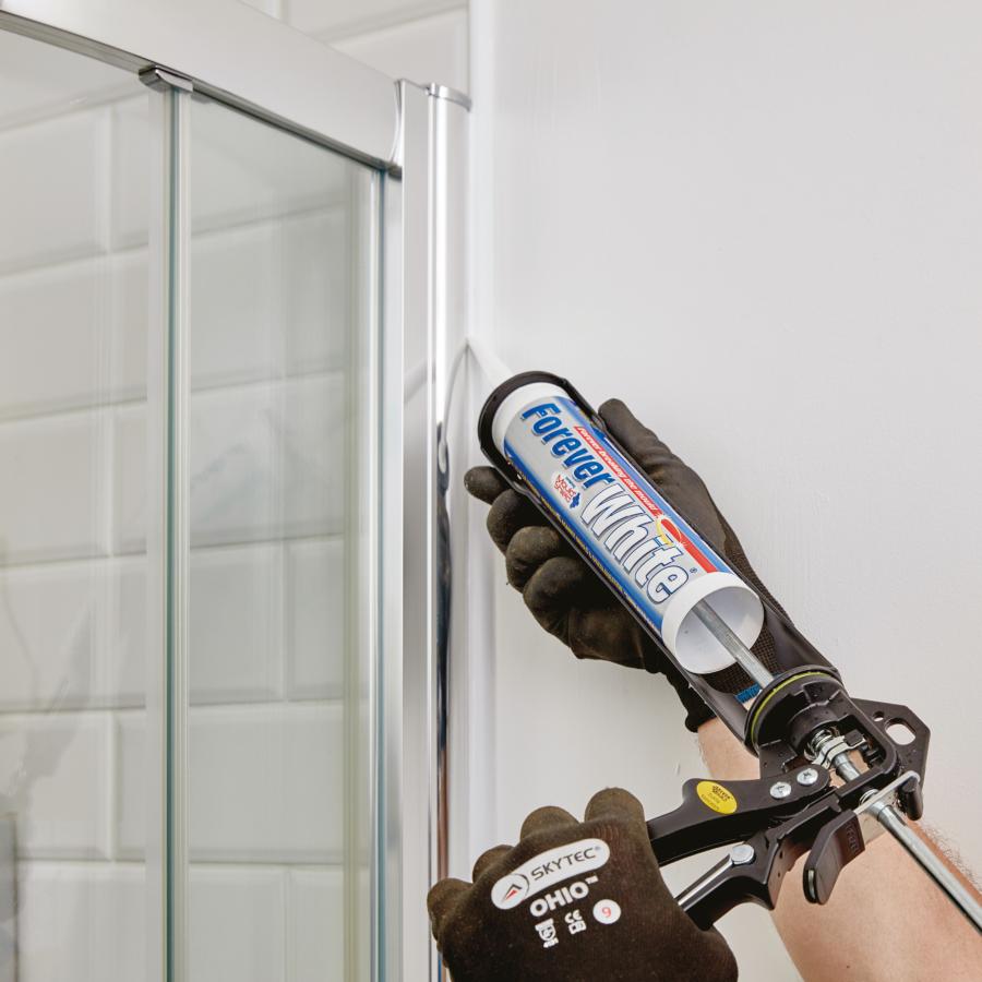 The Everbuild Forever Clear Anti-mould Silicone Sealant Clear 295 ml provides a superior seal to protect your home from water damage. It is permanently waterproof and flexible, making it ideal for sealing shower bases, wet rooms, and around baths, sinks and basins.
