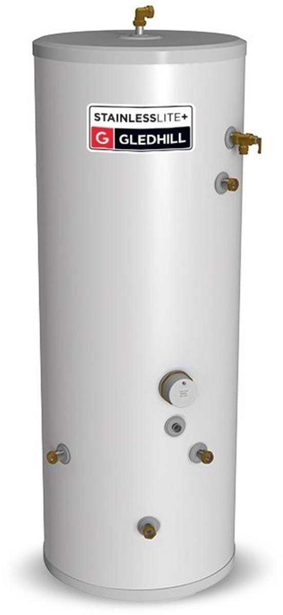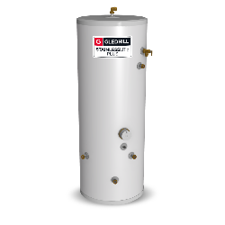 The StainlessLite Plus Indirect (PLUIN400) is a 400 Litre Indirect Unvented Cylinder from Gledhill. The indirect model has a high efficiency corrugated tube coil which is connected to a conventional boiler to heat the cylinder of water, providing faster recovery times than can be achieved with plain tube coils.