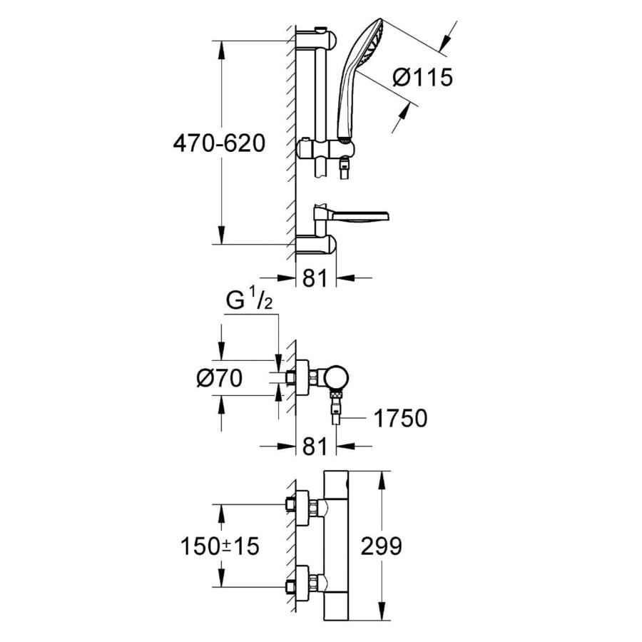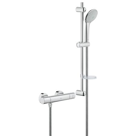 This is the Grohe shower model Grohterm 1000 Cosmopolitan M shower set.  It comes with the Grohtherm 100 cosmopolitan M thermostatic shower mixer 3/4" (34430000) and the Euphoria mono shower set (27256001). The shower thermostat will deliver the desired water temperature reliably within a fraction of a second.