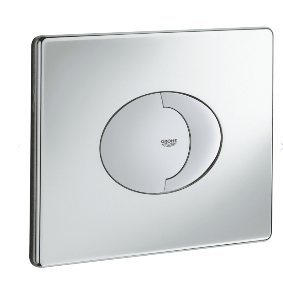 This is the Grohe 38506000 Skate air flush plate. It comes with the Grohe StarLight chrome finish. The dimensions are 156 x 197 mm.