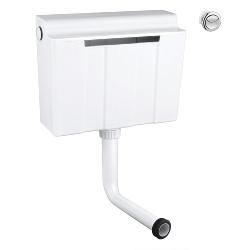 A concealed flushing cistern suitable for walls 18 - 24mm thick with actuation from front, top, left or right. The cistern features a 6/3 litre dual flush and an EcoButton to reduce your water consumption by up to 50%. Comes supplied with fixing brackets, flush pipe, WC inlet connector and dual flush button.