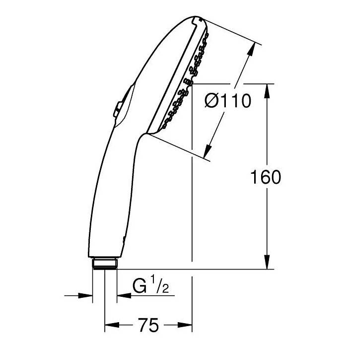 Smooth performance in a slim, stylish package – the GROHE Tempesta 110 hand shower does a lot with its simple profile. Its 110mm head features 2 sprays tailored to your mood: choose from soothing Rain or the focused and powerful Jet spray via the easy-to-use SmartSwitch dial on the back. GROHE DreamSpray technology ensures that the flow of water from every nozzle is equal, for a perfectly balanced spray pattern. The ShockProof silicone ring is there to prevent the hand shower itself, or the shower tray or bathtub, being damaged if it’s dropped. Its crisp good looks and premium performance will last for years – the shower features GROHE SpeedClean silicone nozzles that can be cleared of limescale and dirt with a brush of your finger, while the GROHE Long-Life finish is hard-wearing and easy to clean for a durable yet dazzling surface. The Universal Mounting System fits all standard shower hoses, so you only have to screw the shower hose on. A minimum of 1.0 bar of pressure is recommended.
