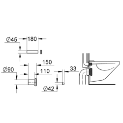 The Grohe WC Inlet and Outlet Connecting Set (37311K00) is designed for wall-hung WCs, ensuring a secure and efficient connection. It includes a 45mm diameter connecting pipe, a 90mm diameter waste sleeve (150mm long), and two chrome-finished caps for WC fixing bolts, providing both functionality and a sleek finish.