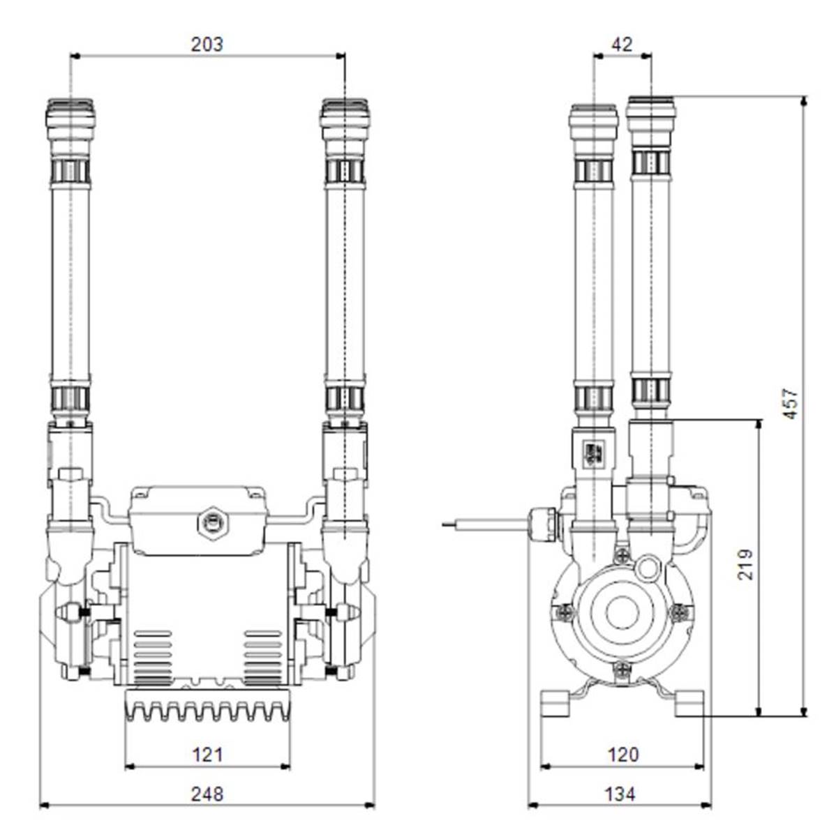 The shower pump is continuously rated as a regenerative pump making it equipped to overcome air pockets and ideal where the plumbing route includes multiple bends and elbows. This shower pump ensures high performance, long durability and is suitable for domestic, commercial or light industrial use to boost shower pressure up to 4 bar. The shower pump is used for boosting both hot and cold water to single showers, multiple showers or whole house boosting where the outlets are below the cold-water tank.