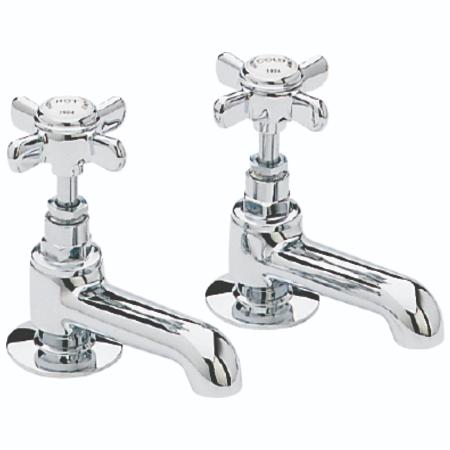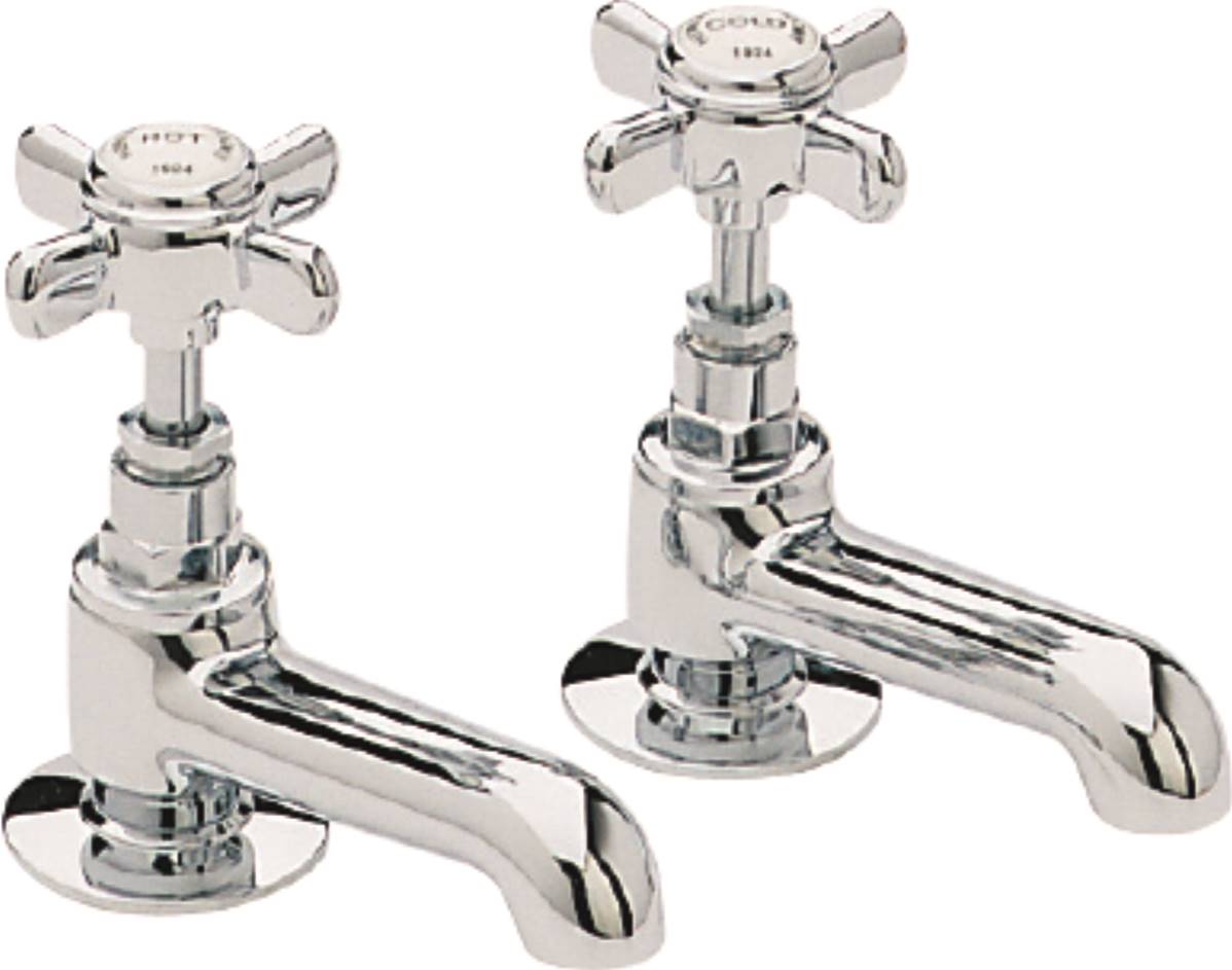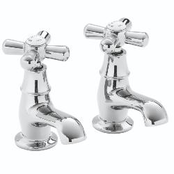 Heritage Dawlish Basin Pillar Taps (Pair) Chrome TDCC00. With their crosshead levers and rounded spouts, the Heritage Dawlish Pair of Basin Pillar Taps are perfect for any traditional-styled bathroom.