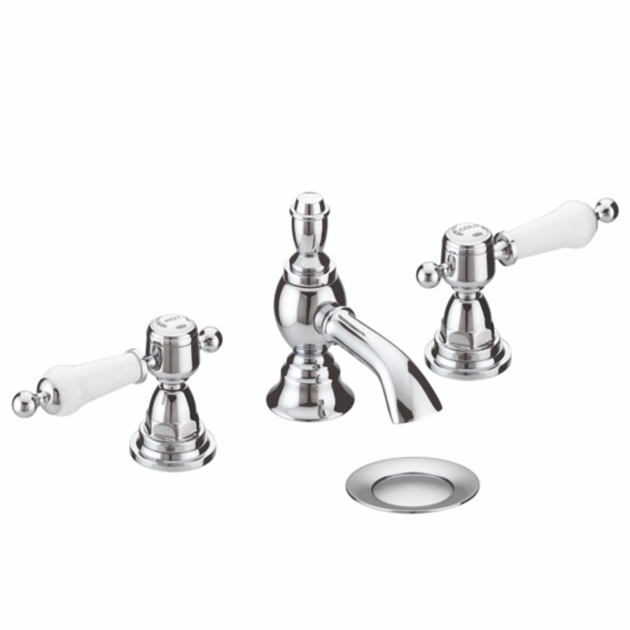 This Glastonbury 3 Taphole Basin Mixer Tap is a high-quality product with stunning chrome finish. With white lever handles and a five-year guarantee, it's perfect for those who want an outstanding mixer tap that will last.