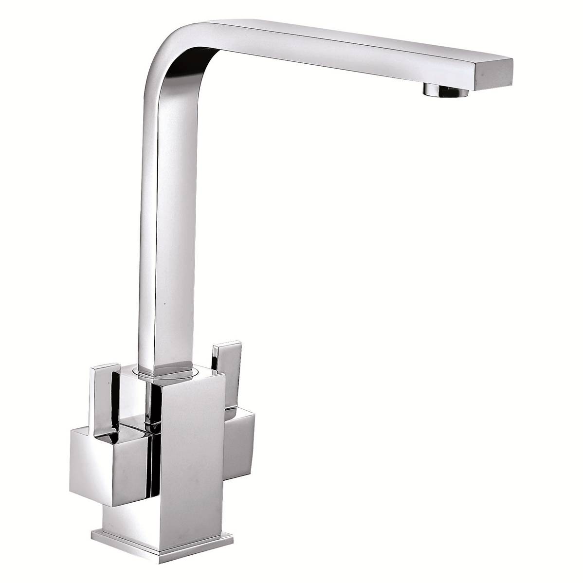 Angular design 350mm tall twin lever sink mixer with 190mm reach square 'swan neck' style spout and flat lever handles