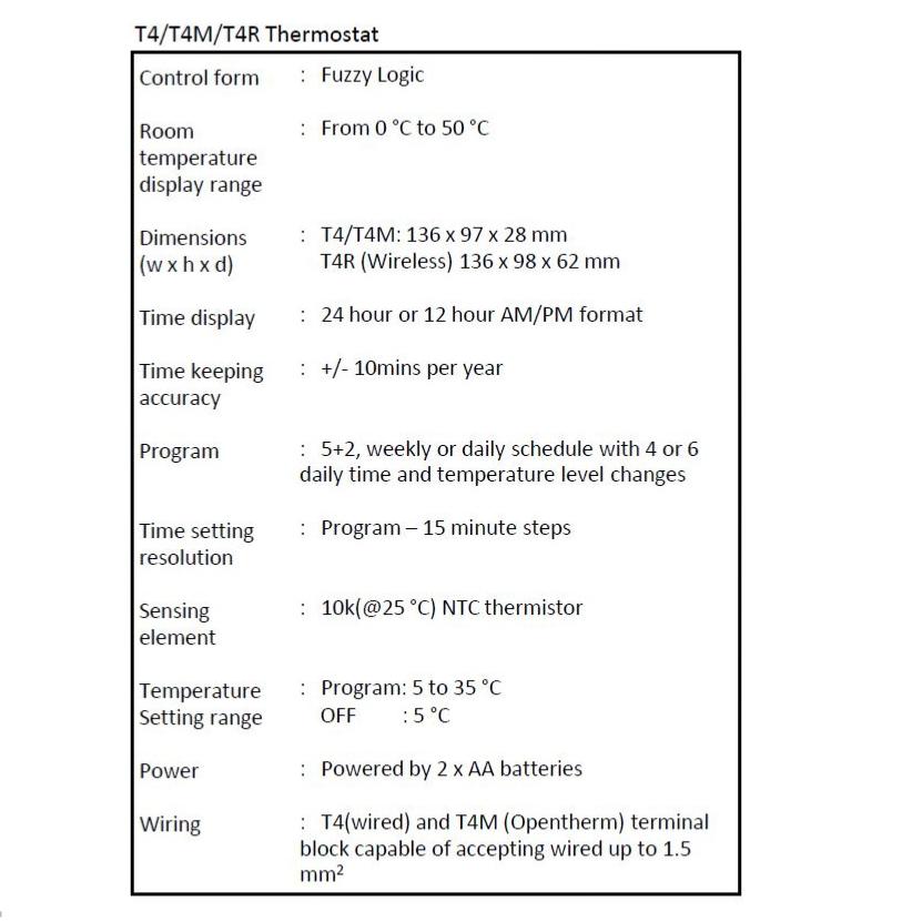 The Honeywell HomeY4H910RF4003T4Ris a 7 Day Wireless Programmable Thermostat designed to provide automatic time and temperature control of heating systems, suitable for homes and apartments. The T4R compatible with 24-230V on/off and OpenTherm(R) appliances such as gas boilers, combi-boilers and heat pump, for wireless installations. Exists of a Thermostat and a Receiver box. The solution is designed with the installer in mind and includes a Receiver module with mounting options for directly on the wall or on a wall box.