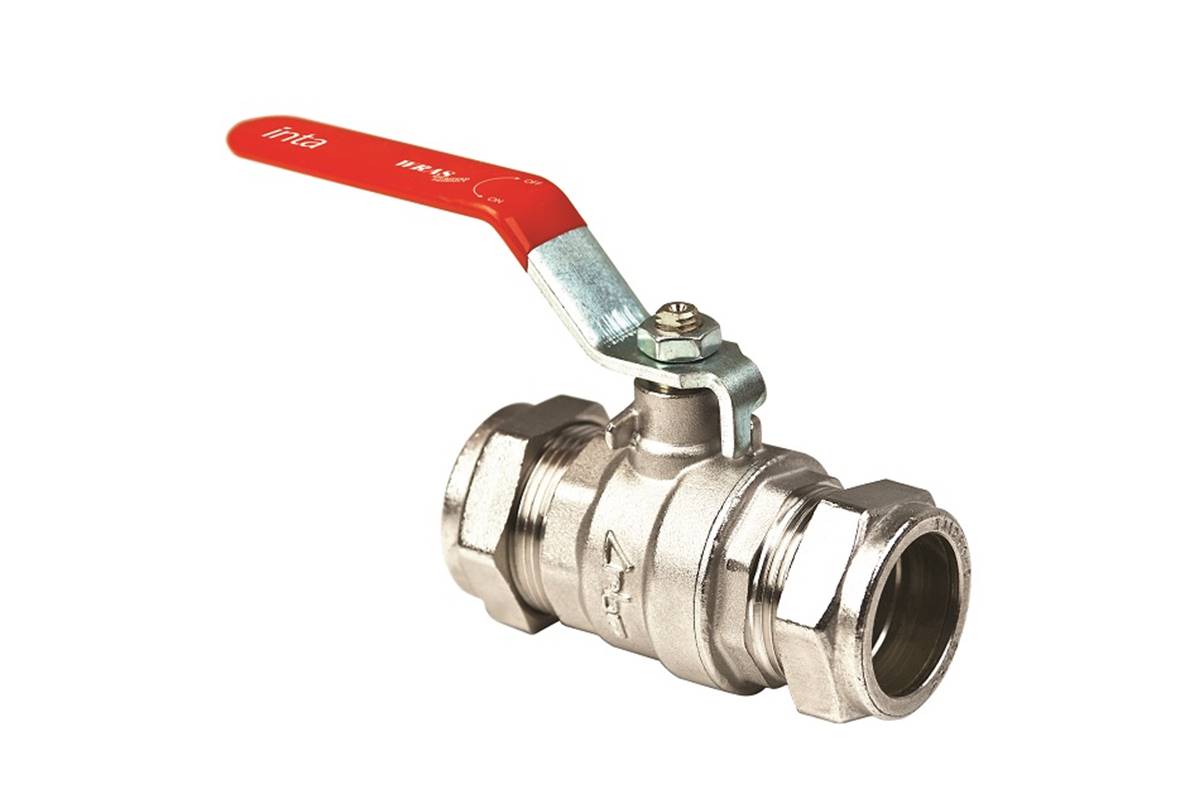 Inta’s isolating ball valves with anti blow out stems, double viton seals available with fxf or compression connections and colour coded lever handles.