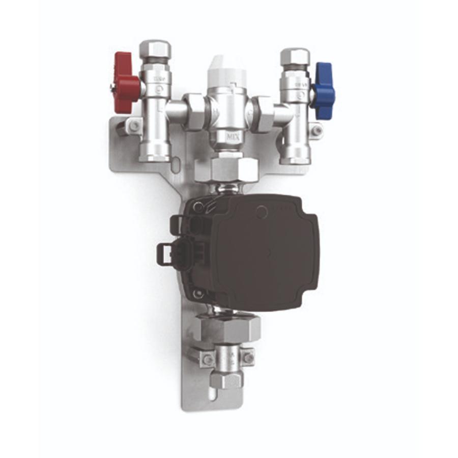 This mixer set is created for small area use with kitchens, bathrooms and conservatories. The set is made up of a mixing valve, circulating pump, isolating valves, flow andreturn connections and fixing bracket. The set comes with a sleek nickel finish.