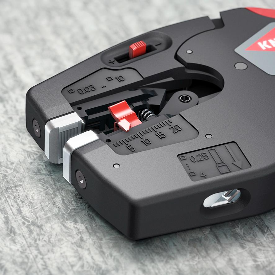 ✔ Stripping with fine adjustment – for optimal adjustment to special materials or temperature conditions for flexible and solid conductors between 0.03 and 10 mm² (AWG 32-8)