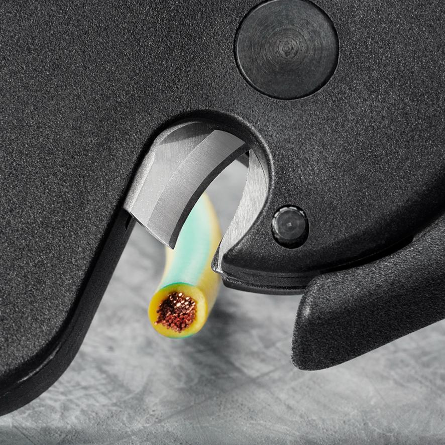 ✔ Clean cut of copper and aluminum conductors fine-stranded up to 10 mm² (AWG 8), solid up to 6 mm² (AWG 10)