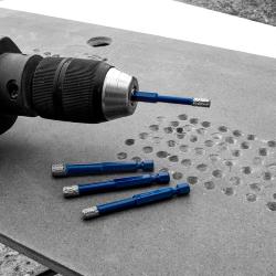 The best drill bit for tiles? Mexco of course! No need to use water when drilling man-made or natural materials, because they're made with wax filled cores that melt, lubricate and cool down at just the right time. Hex fitting ensures stability in your chuck so you can get those hard-to reach places without any problem whatsoever. And don't forget: diamond tips make sure there are no rough edges left behind while giving an even finish all over - just what we expect from Mexco!