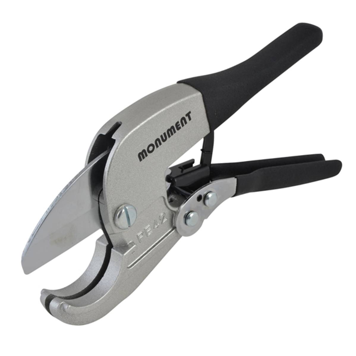Monument Tools Plastic Pipe Cutter will cut plastic pipes of diameters up to 42mm and is effective on PVC, polybutylene, MDP, polyethylene, HEP20®, plastic overflow pipe, plastic electrical conduit, supertube, mini trunking, rubber hose, pneumatic pipe and electrical sleeving.