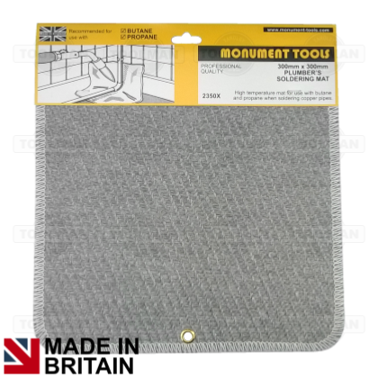 For protection of surrounding areas when soldering and brazing. Monument Soldering & Brazing Mat resists temperatures up to 600°C and do not present any of the hazards associated with asbestos material.