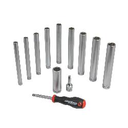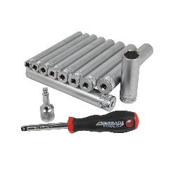 • 9 × Ultra-long "flank style” forged sockets for monobloc taps (sizes: 8mm to 16mm)