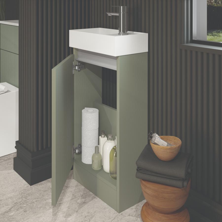 Newland 400mm Single Door Cloakroom Basin Unit With Ceramic Basin Sage Green