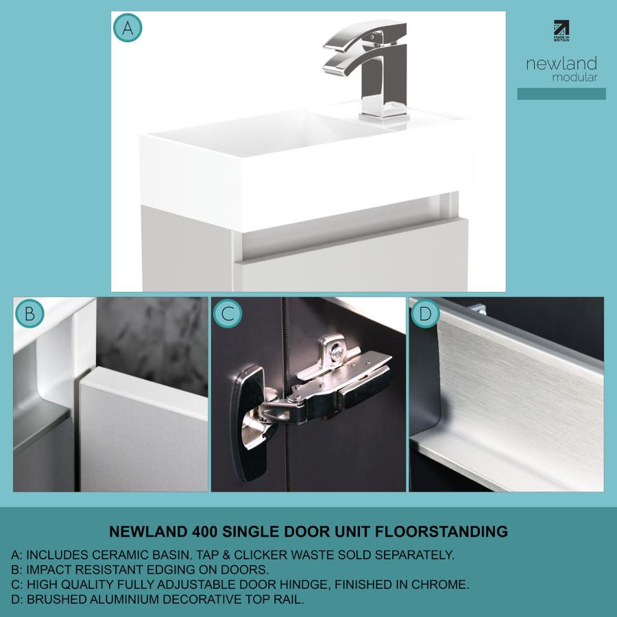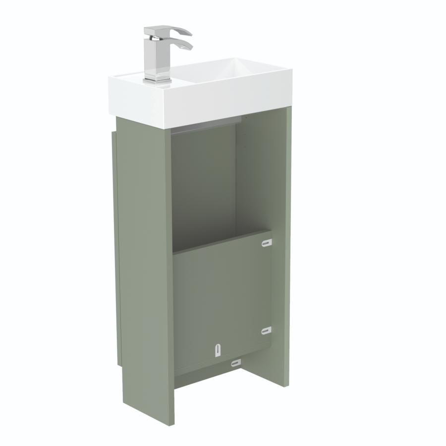 2. Features of Newland 400mm Single Door Cloakroom Basin Unit With Ceramic Basin Sage Green: